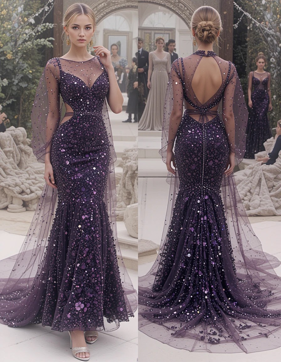 If you love a figure-hugging silhouette, a indexed marmed dress in the purple will change the head. This style decreases adding sparkle to your look. Key Tip: See a dress with a modest train for additional elegance. ✅ Choose a deep violet or plum shade for a sophisticated look. ✅ Pair with strapi heels and a metal clutch. ✅ Use a highlighter on your collarbone for an additional brightness.